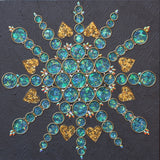 A gorgeous white and gold nebula acceted by royal blue petals, rose quarts and a soft lilac blue centre.