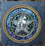 Gold rings and crystals on gallery depth canvas.